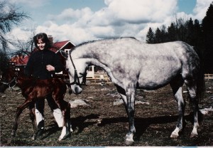 Vi som bor här på gården i Åkhult är Eva-Lotte och Ronny Eliasson. Ronny och jag flyttade till Åkhult 1988 och hade med oss hästarna Peter Plys och Chili (ex Zorba). Mitt hästintresse har funnits så länge jag minns. Jag började på ridskola i 10-11 -årsåldern. När ridskolan lades ner 3 år senare, tillbringade jag den mesta av min fritid i ett privatstall med varmblodstravare och olika ponnier. 17 år gammal inköptes min första häst -en varmblodstravare och ett par år senare en pensionerad hopphäst. Därpå följde flytt till Växjö och studier. Hästeriet lades på is i 6 år! Abstinensen var svår kan jag säja. 1985 började jag åter på ridskola och våren därpå inköptes Chili.