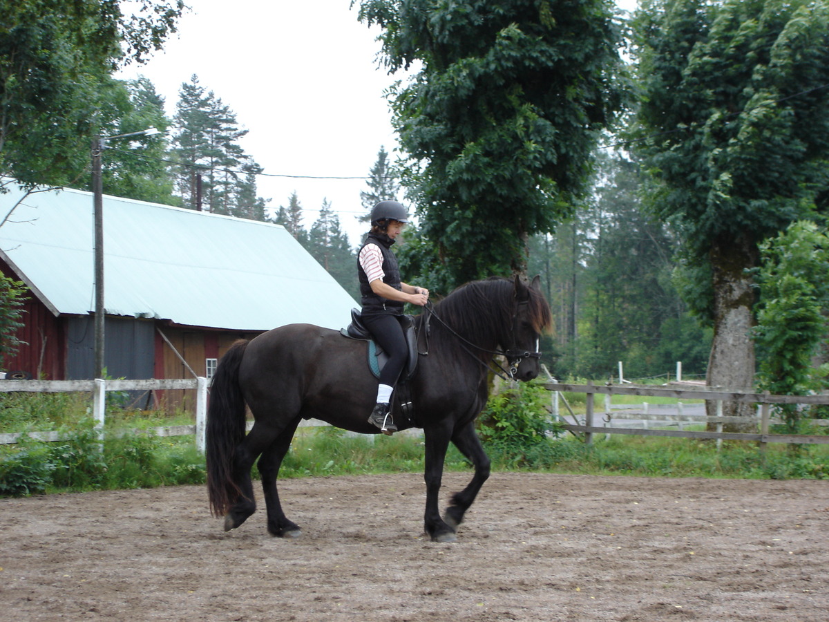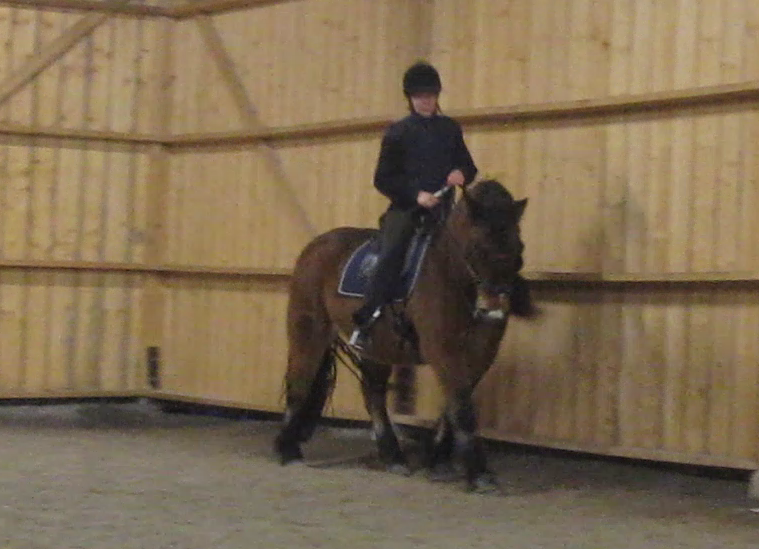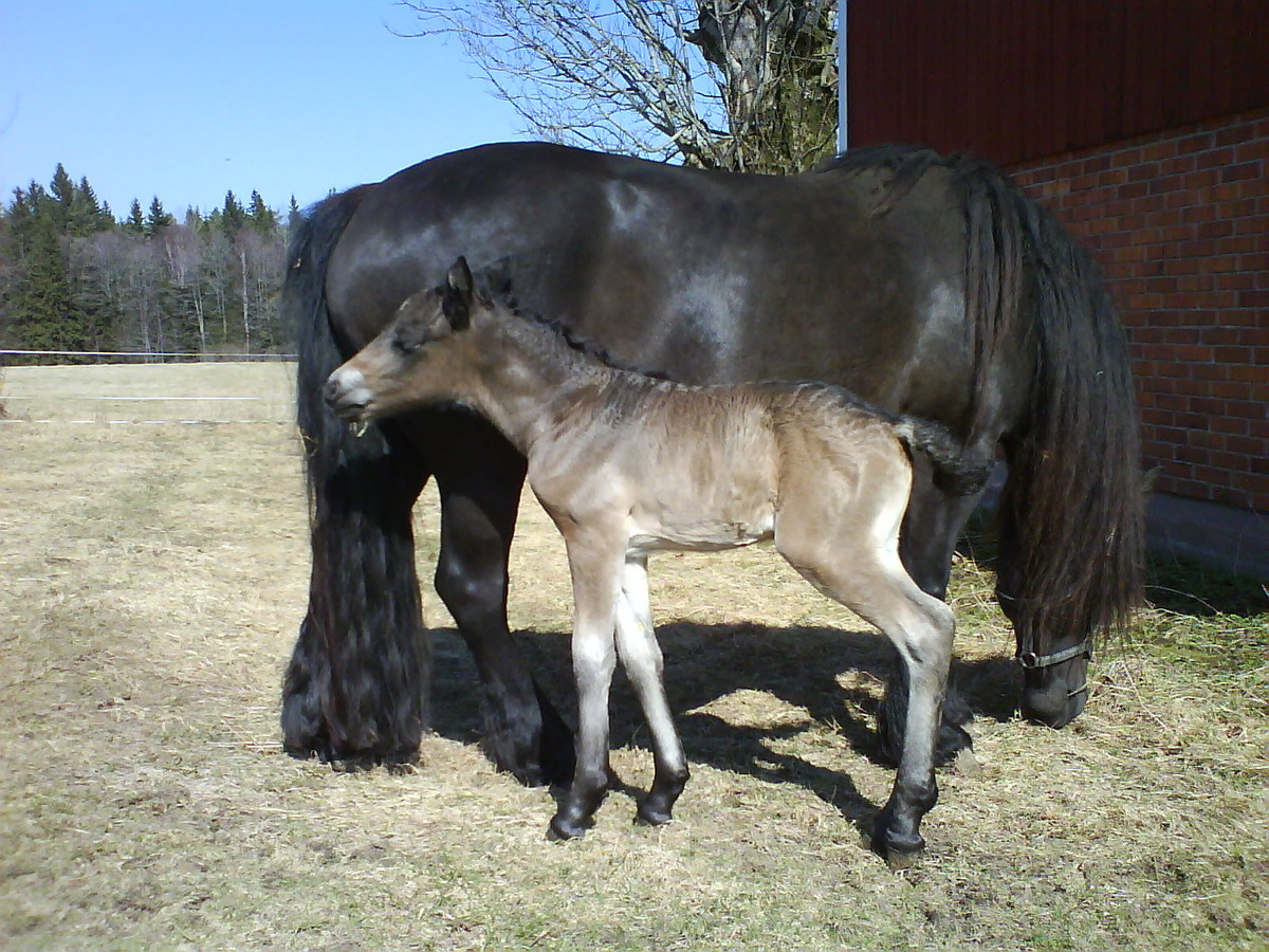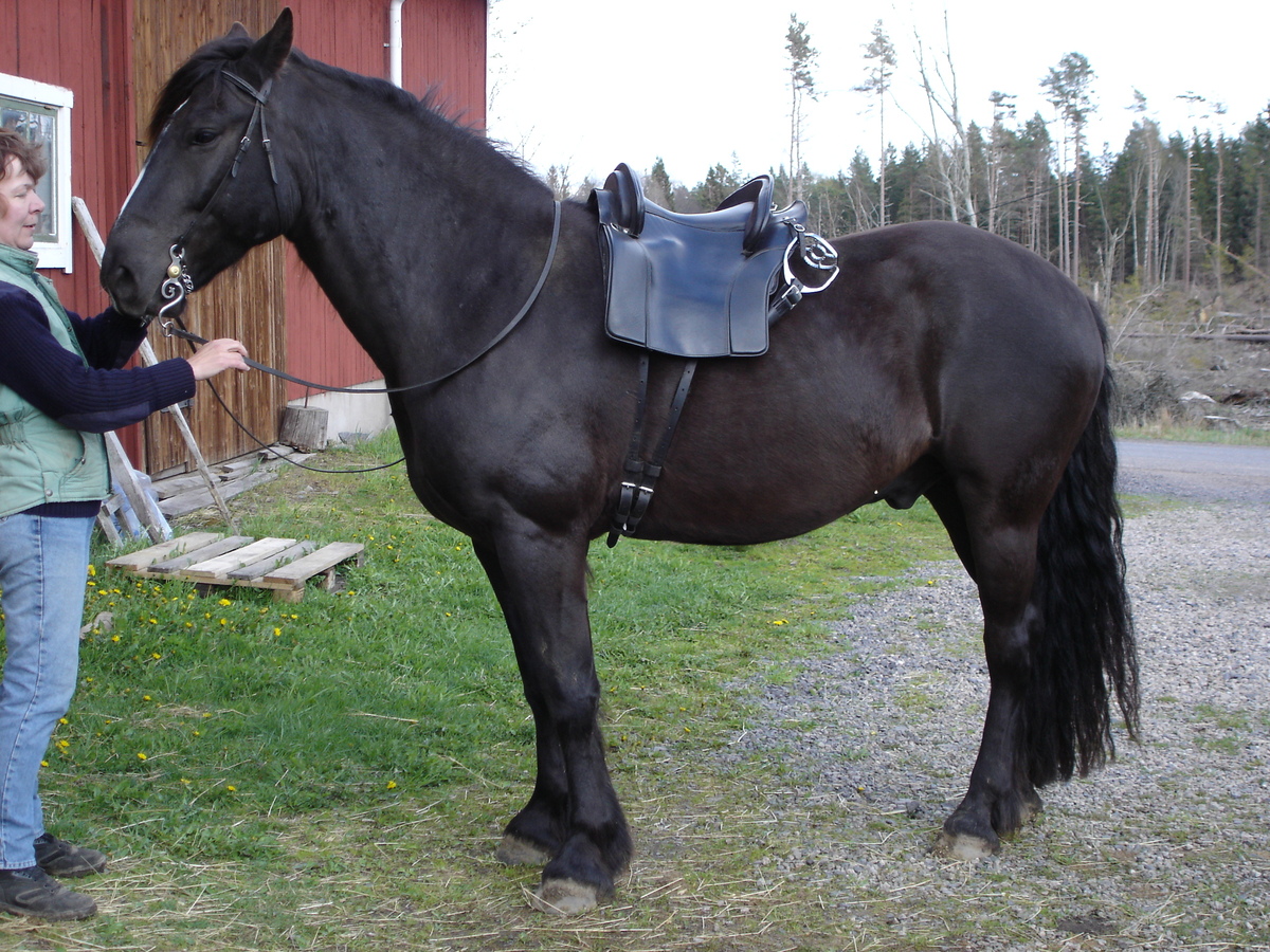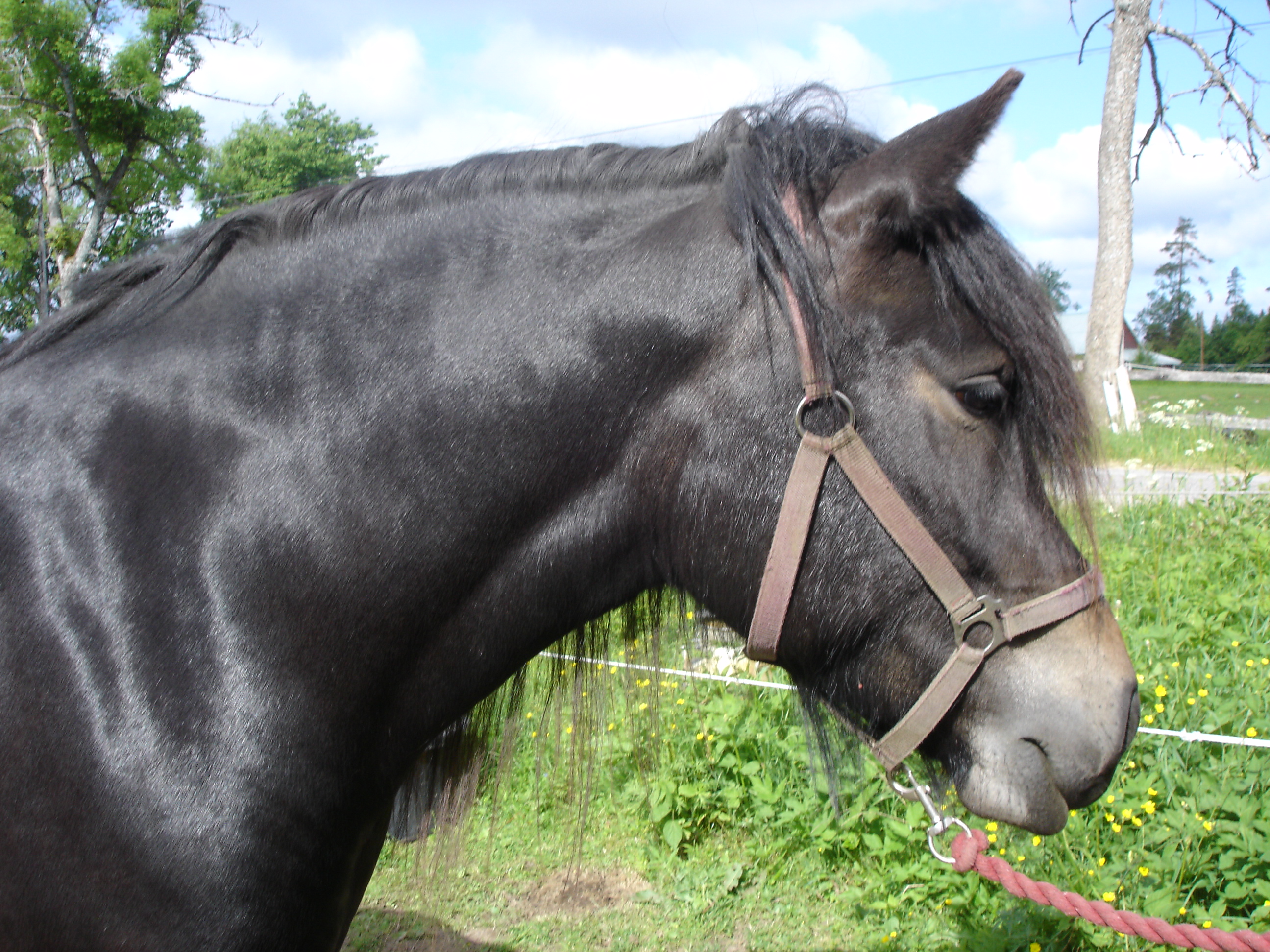 Svart nordsvensk hingst. Uppfödare Johan Pettersson, Rimforsa. Inköpt mars 2011. Kastrerades sommaren 2011 pga att han rymde ur hagen för att uppvakta söta Liv. Vi var oroliga att rymmarbeteendet skulle bli befäst. Vi såg aldrig var han tog sig ut, men vid ett tillfälle när han var lite otålig att komma ut i hagen till sina kompisar, hoppade han stillastående, som en katt över grinden, stannade direkt med en nigning i landningen, med mig fortfarande hållande i andra änden av ”snöret”. En blivande hopphäst?