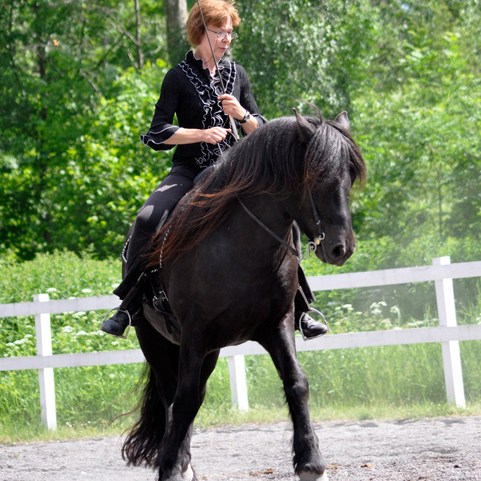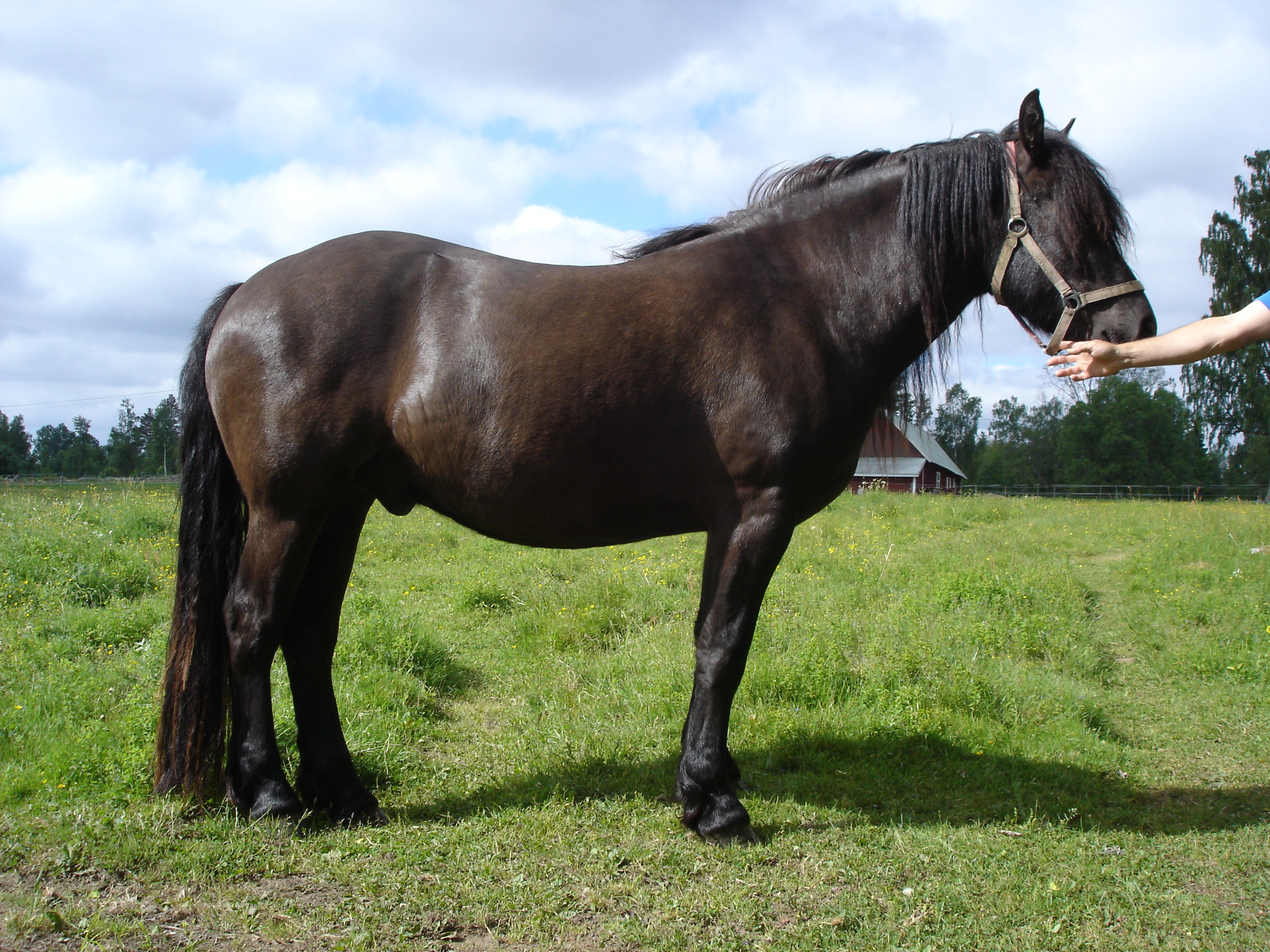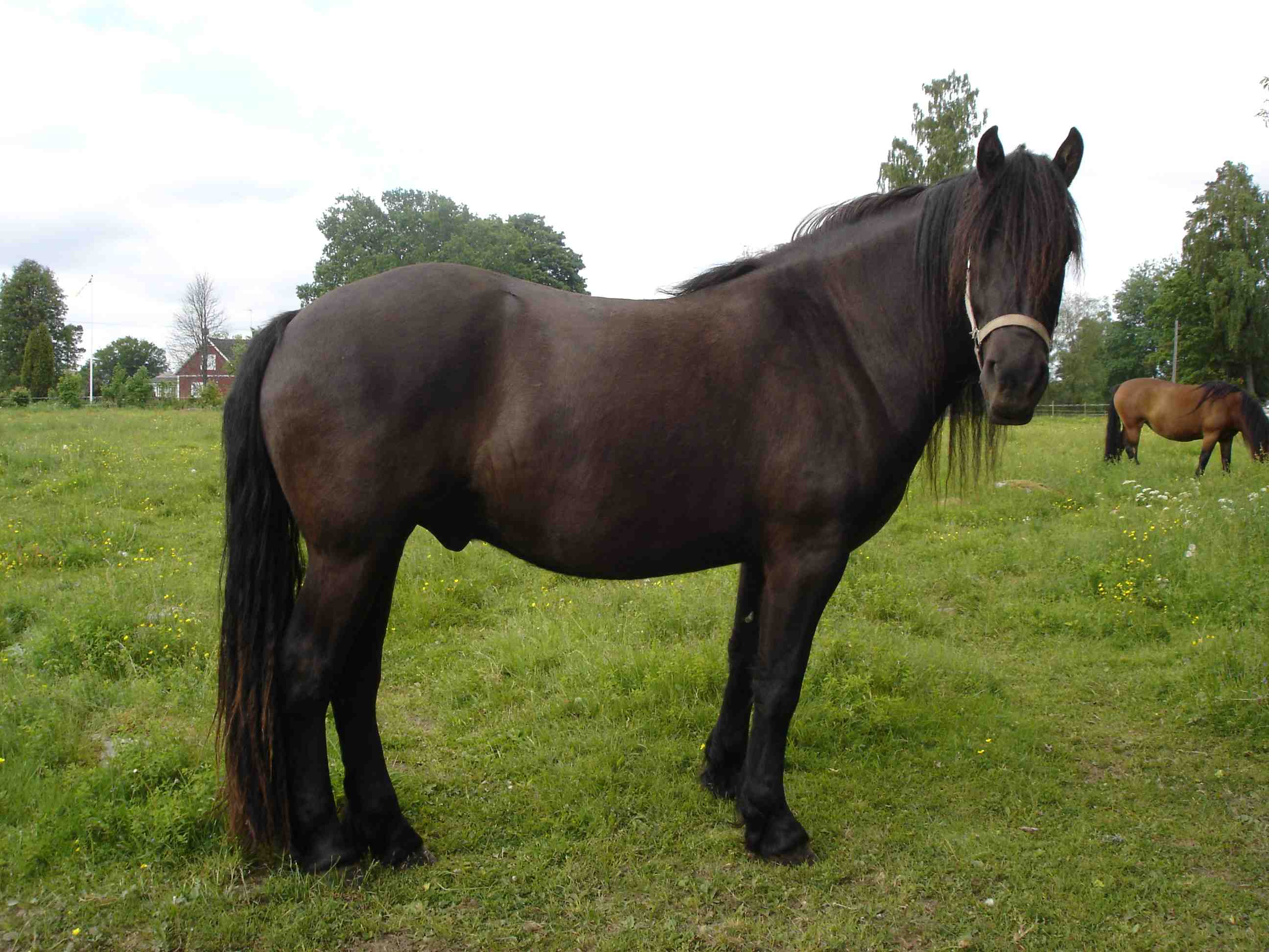Svart nordsvenskt sto. Helsyster med Rasputin. Uppfödare Gunvald Hultinsson. Inköpt 2007.