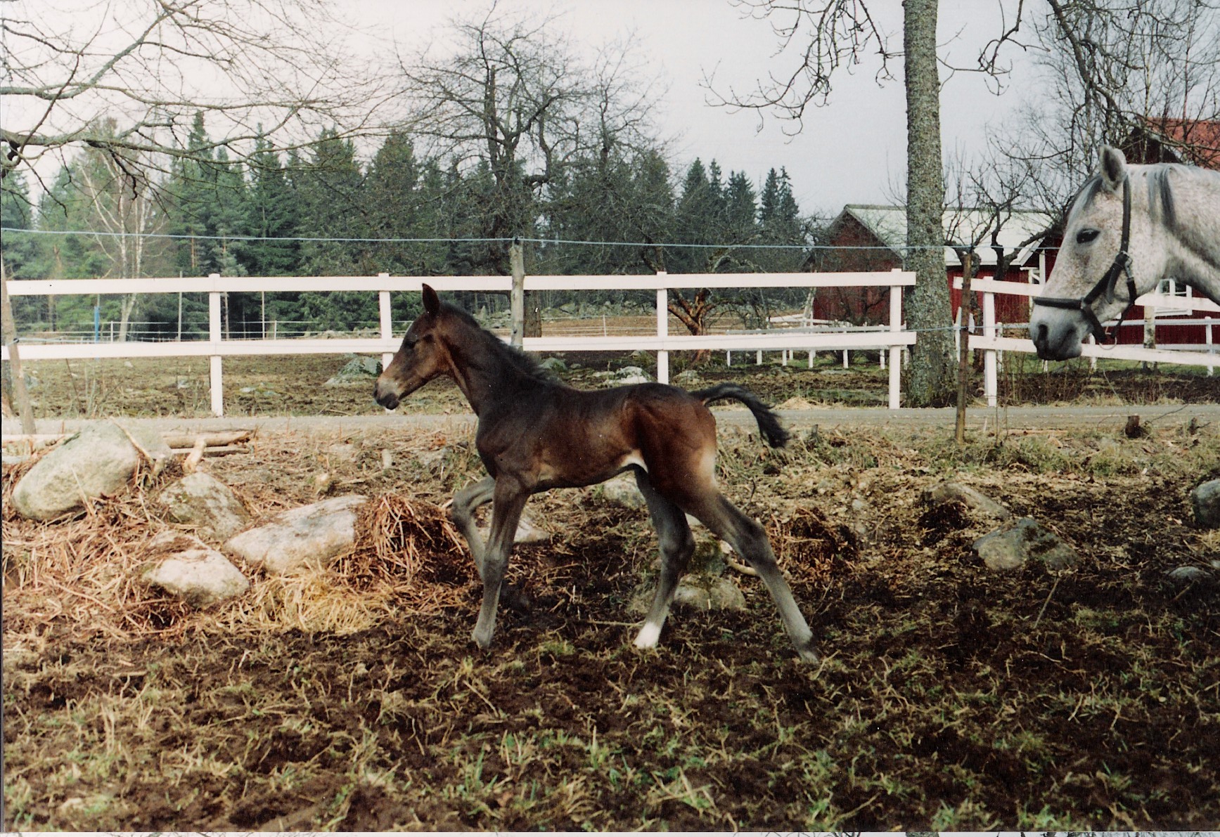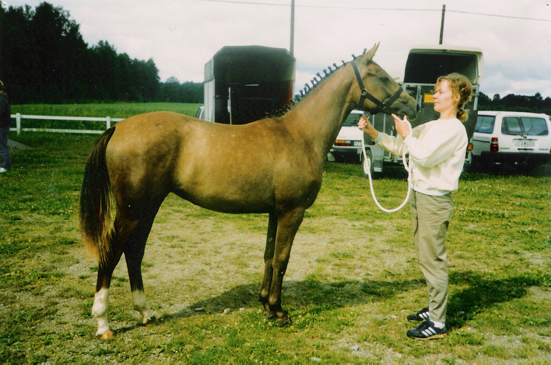 En fantastiskt vänlig och okomplicerad häst. Lika vacker som sin mor. Hon är nog det fölet som vi lagt ner minst tid på att uppfostra. Hon sa bara ”jaha, det kan jag väl…”Såldes pga att vi vid den tiden hade fler hästar än vi hann med. Har ångrat mig många gånger…
