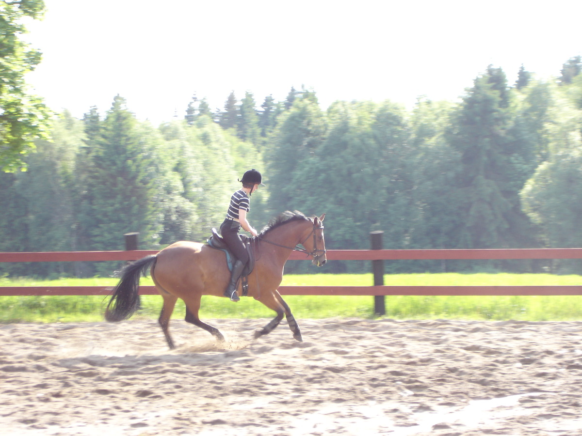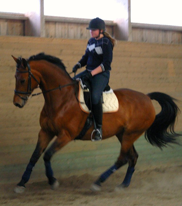 En mycket vänlig och känslig häst. Vacker och talangfull. Tyvärr väldigt lättstressad och osäker. Dessutom svårt att reglera ner stressnivån. En bra dag när inget oförutsett hände, var han en fantastisk häst att rida. Han behärskade skolorna i alla gångarter, galoppiruetter och hyfsade byten. Halva steg påbörjades. Allt detta kunde denne fantastiske kille bjuda på, vindstilla dagar, gärna mulet så att det inte blev skrämmande skuggor, med bra ridunderlag och naturligtvis utan åskådare. När han blev spänd var han svår att nå. Han lärde mig ännu lite mera om mig själv