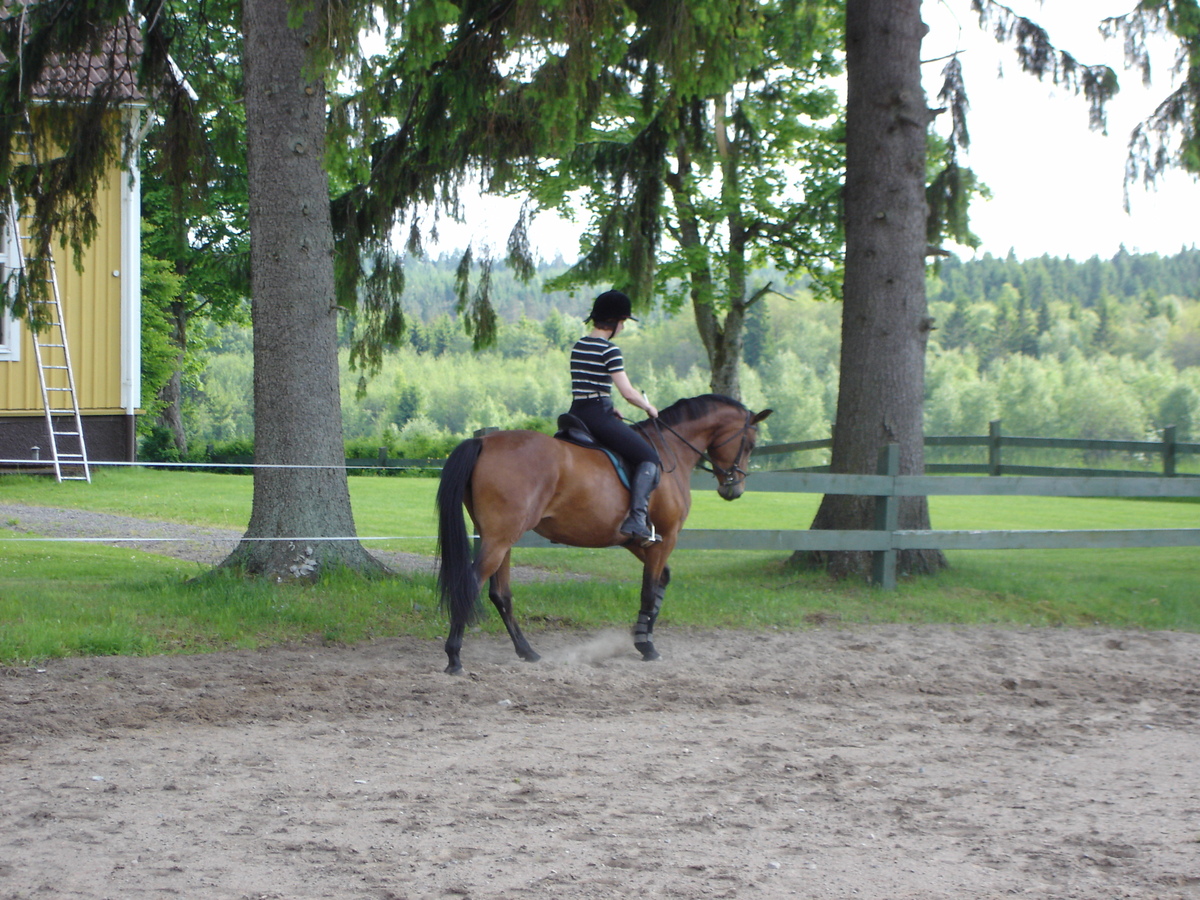 2015 12 26 Uppdatering. Mycket har hänt. Rasse är fortfarande en fantastisk häst. Men i takt med att jag förstår mera, så inser jag att han gått i sin konfortzon alldeles för länge. Vi har under hösten jobbat med rakriktningen i alla gångarter och att därmed bära vikt lika på alla(!) bakbenen. Inte alls så lätt som det låter. Men åter igen-det handlar mest om min rakriktning.